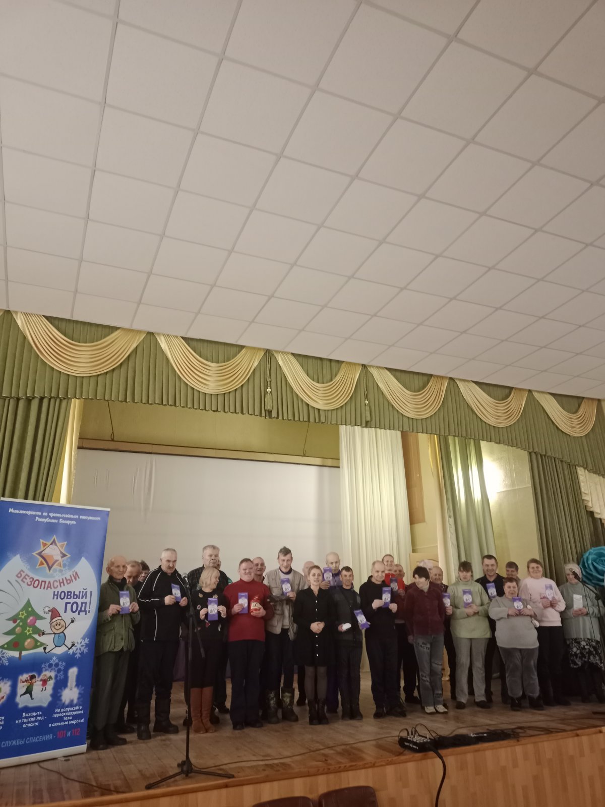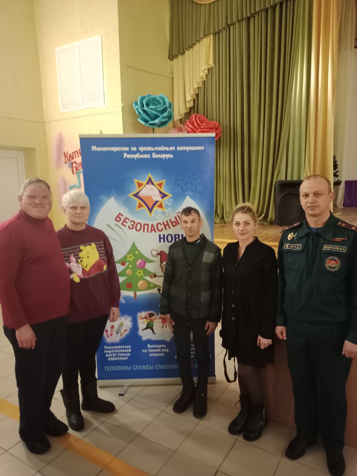 Новый год — один из самых любимых праздников у детей и взрослых. Но даже во время праздничного веселья не стоит забывать о безопасности. Чтобы рождественские и новогодние праздники не были омрачены пожарами и другими чрезвычайными ситуациями 16 декабря в ГУ «Пуховичский психоневрологический дом- интернат для престарелых и инвалидов» совместно с Пуховичским МЧС Минской области проведена викторина «Безопасный Новый год , показ тематического фильма о правилах безопасности «Пиротехника — серьезный источник опасности» Сотрудники МЧС так же провели беседу о правилах поведения на льду, эксплуатации электрооборудования, напомнили о последствиях использования хлопушек петард. Примечательно, что серьезный разговор прошел в игровой форме и все участники получили буклеты «Безопасный Новый год»