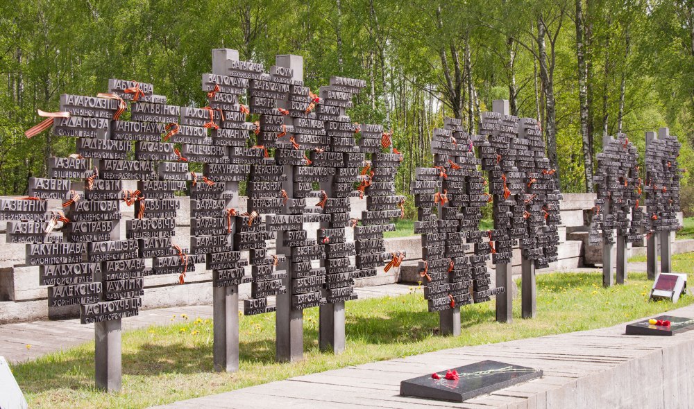 На месте сожженной деревни 5 июля 1969 г. был открыт Государственный мемориальный комплекс «Хатынь».