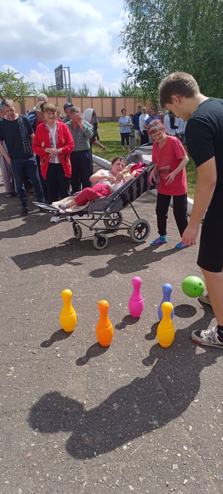 Первый день лета в доме-интернате отметили игровой программой «Вместе весело играть» Мероприятие проходило на свежем воздухе на территории дома-интерната. Для участников игровой программы были организованы игровые зоны, где все желающие могли найти себе занятие по душе: рисовать мелками на асфальте, петь песни с друзьями на музыкальной станции, играть в боулинг и проявлять свои навыки на спортивной площадке. Каждый участник получал жетон за участие, который в дальнейшем мог поменять на сувениры, которые приготовили наши спонсоры и друзья.