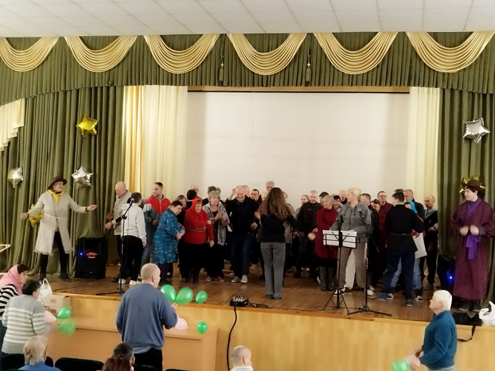 С огромным удовольствием проживающие пансионата приняли участие в конкурсной программе. Рассказывали стихи, пели песни, танцевали, играли в игры. Самые активные получили призы. В конце программы все участники получили сладости.