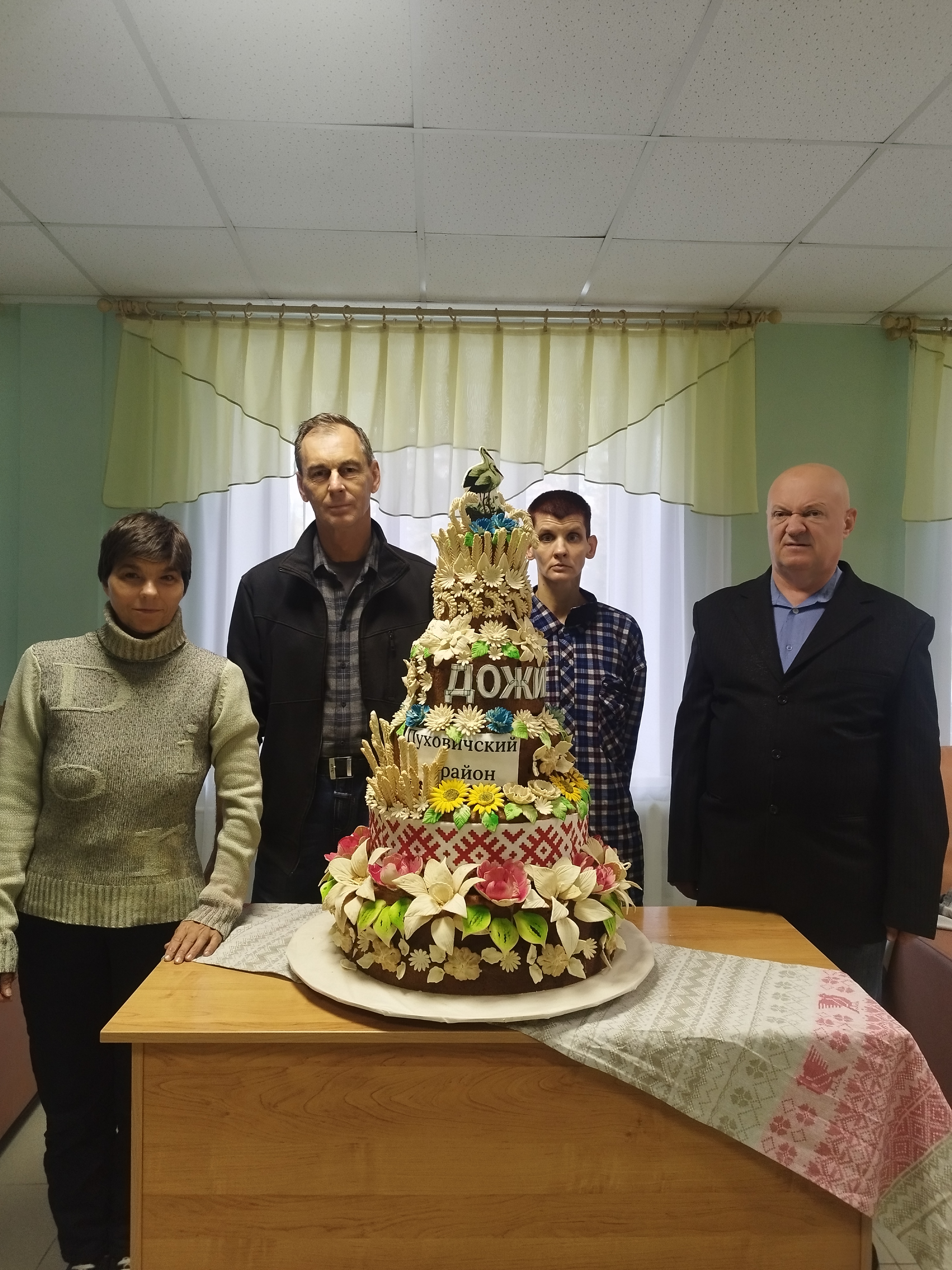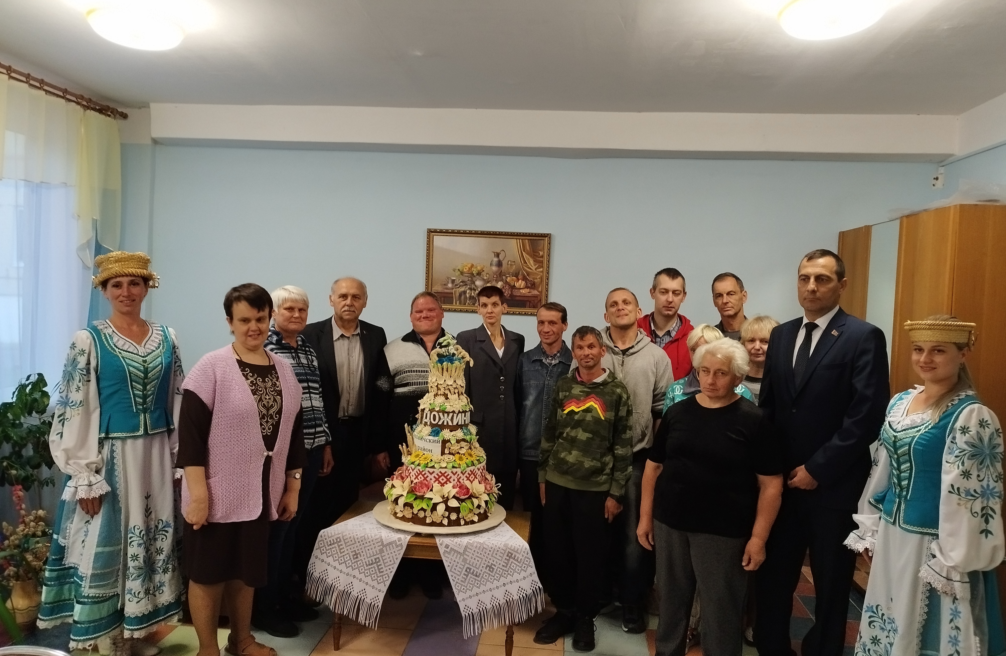 Каравай Пуховичского района на областных «Дожинках» собрал много восхищенных взглядов.  И по доброй многолетней традиции после областных «Дожинок» районные власти передали выставочный хлебный каравай в Пуховичский социальный пансионат «Семейный очаг».