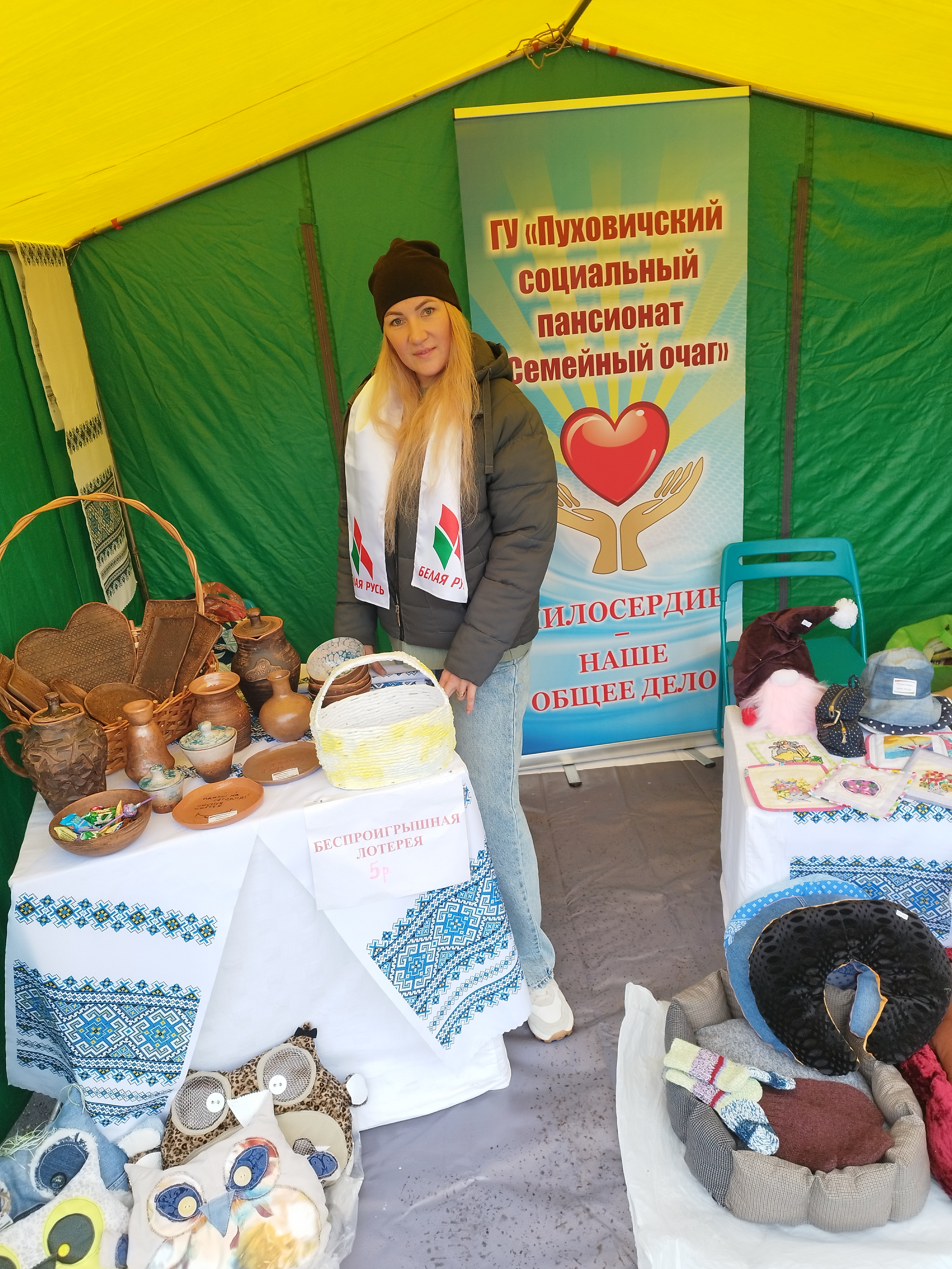 Posted on 06.10.2025 lxxxPosted in Наши новости 04.10.2025г. ГУ «Пуховичский социальный пансионат «Семейный очаг» принял участие в районных Дажынках в а.г. Блонь. Агрогородок превратился в большую праздничную площадку с подворьями, торговыми рядами и лавками с сувенирной продукцией.