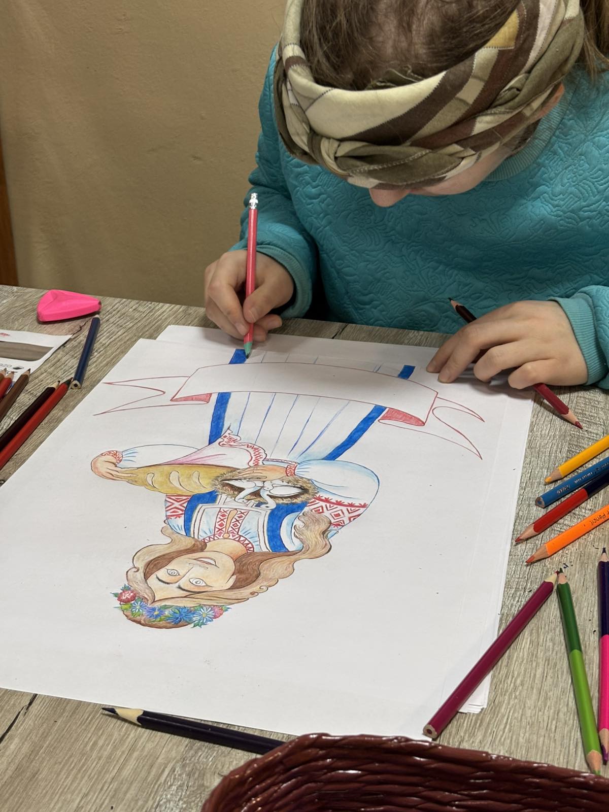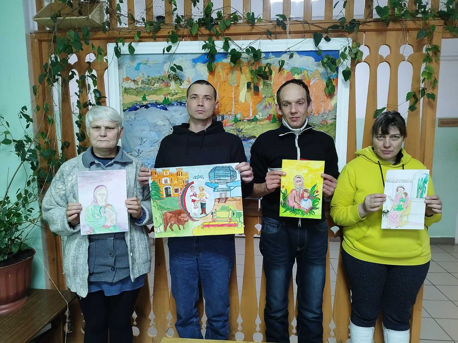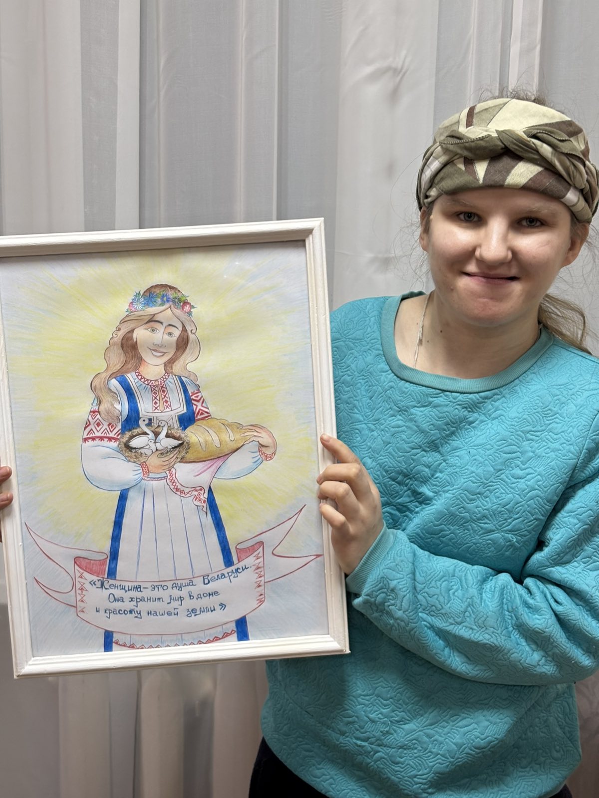 10.02.2026 проживающие государственного учреждение «Пуховичский социальный пансионат «Семейный очаг» приняли участие в областном творческом конкурсе рисунков «Женщины за сохранение традиций». Первое место в пансионате заняла Маляровская Кристина, которая изобразила заботливую женщину – душу Беларуси, хранительницу мира, красоты нашей земли.