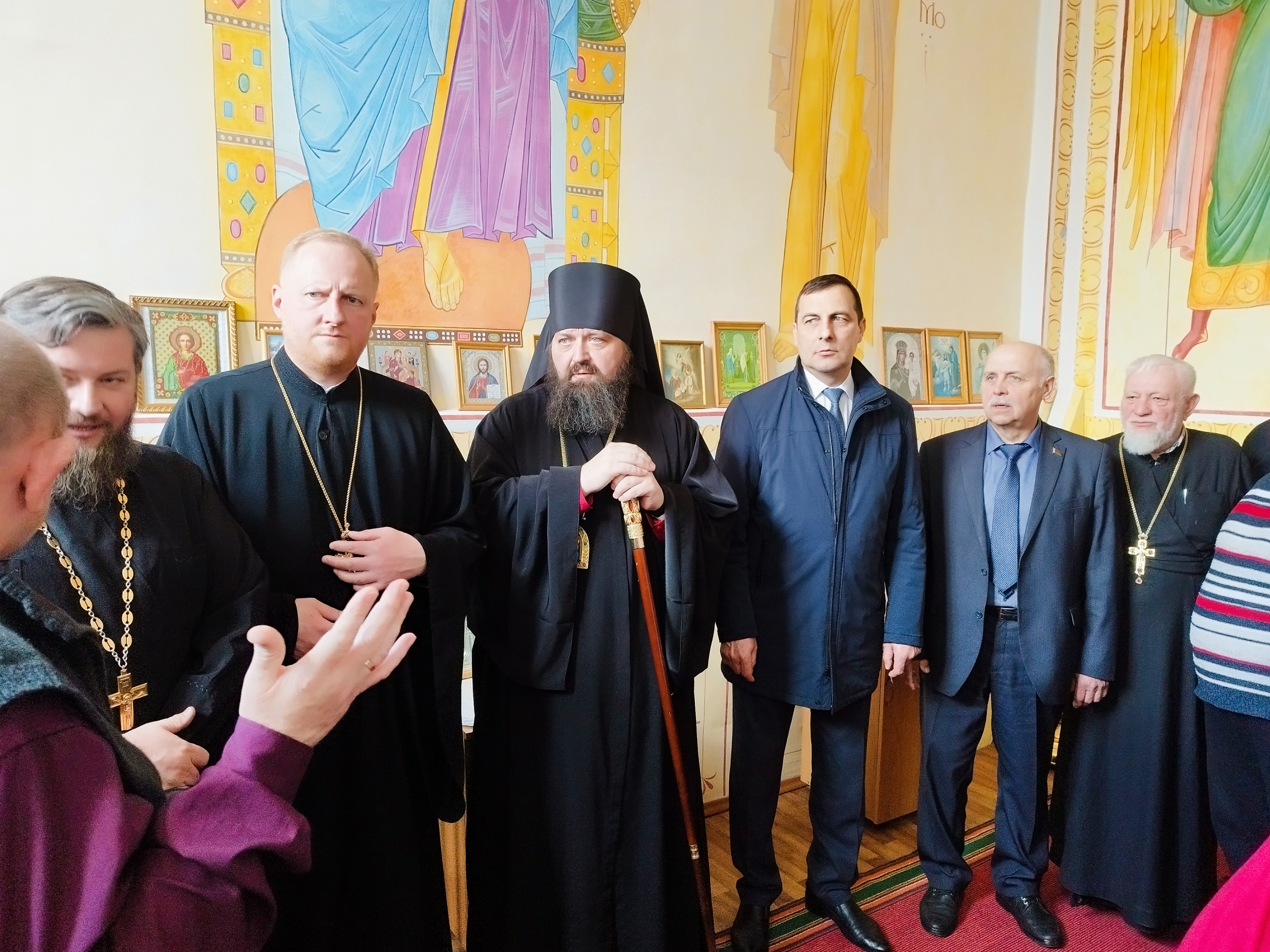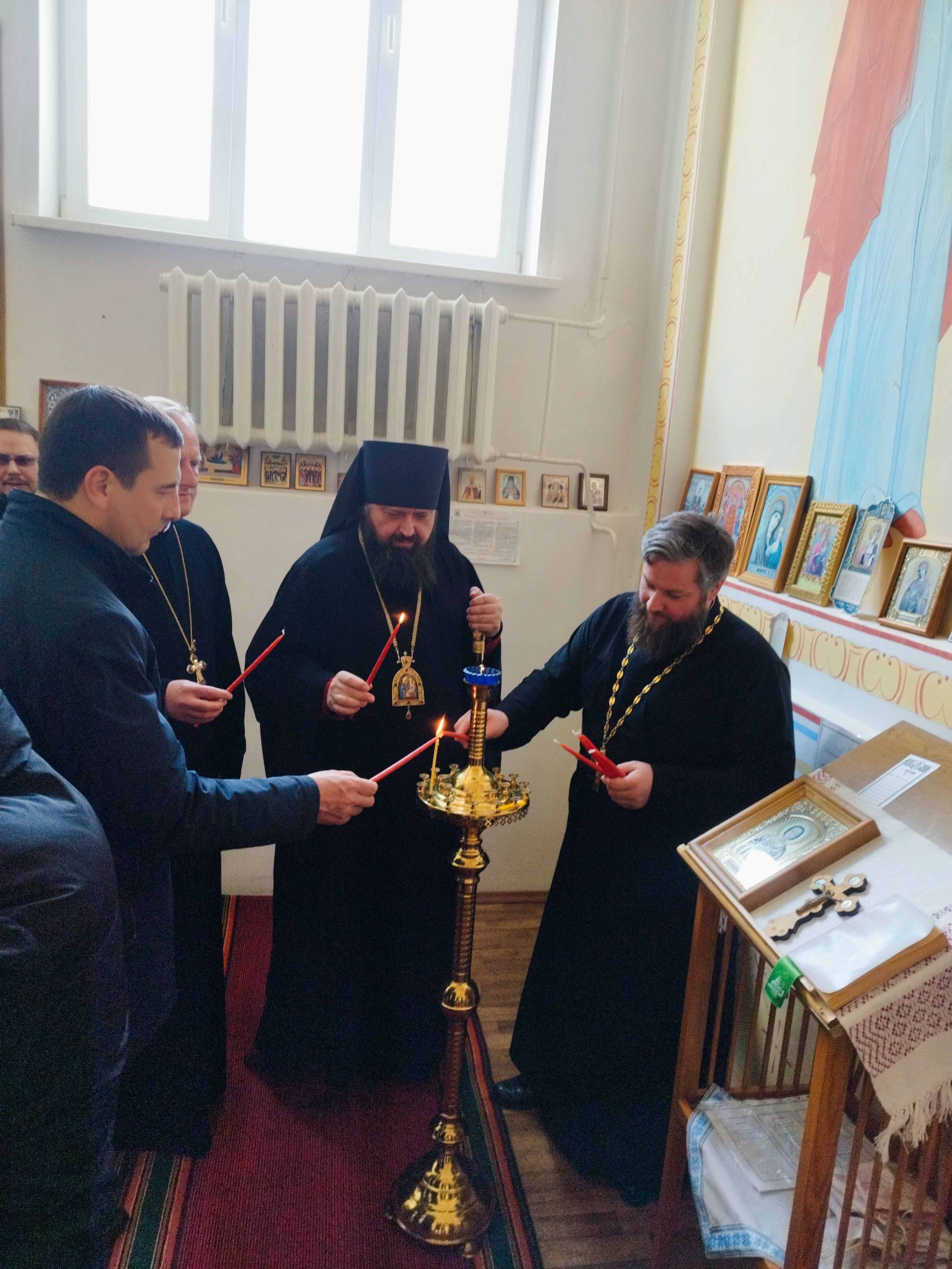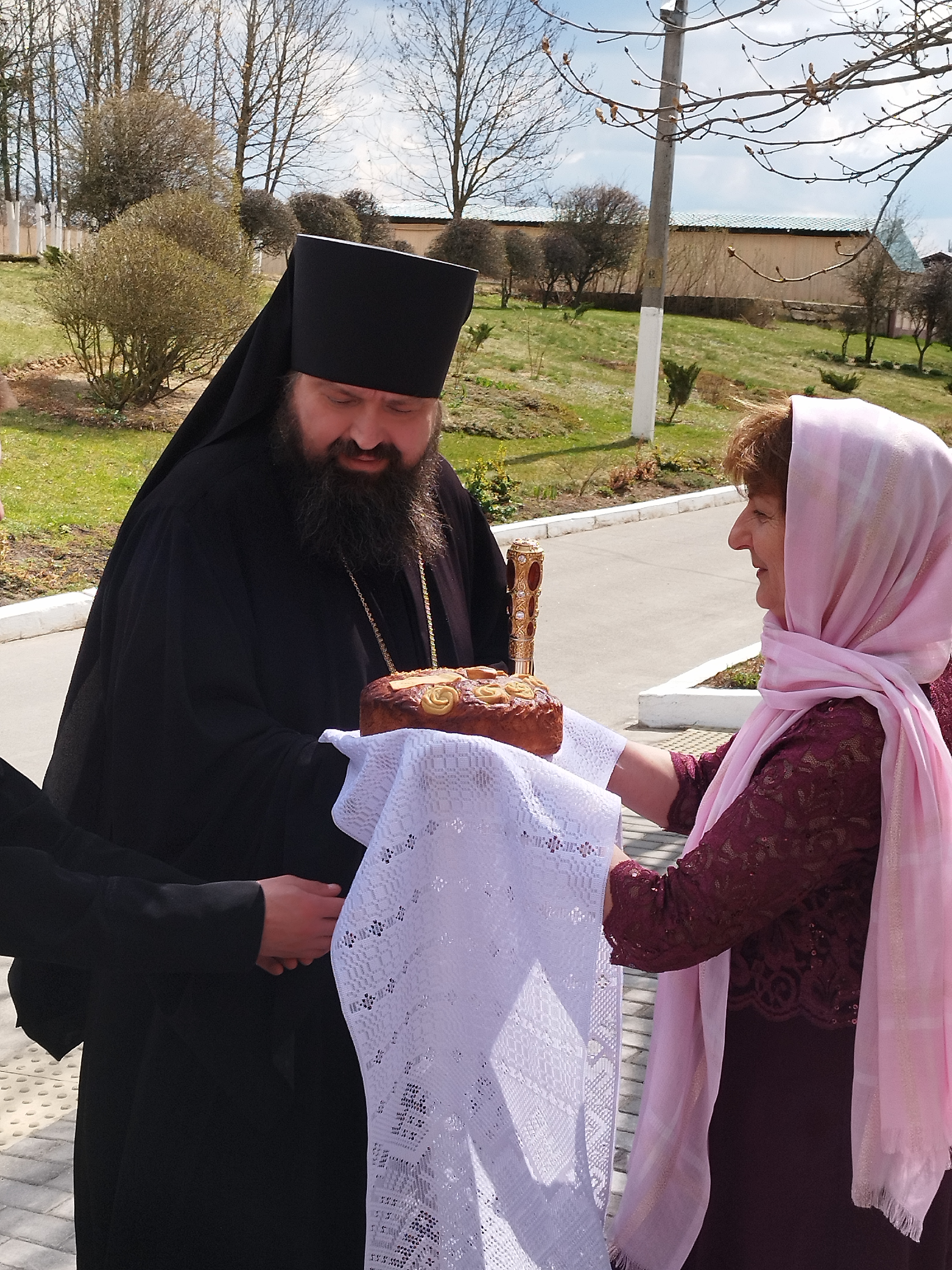 Христос Воскресе — тепло приветствовал в молитвенной комнате сотрудников и проживающих пансионата епископ Амвросий. В гости он приехал с подарком: микроволновой печью.